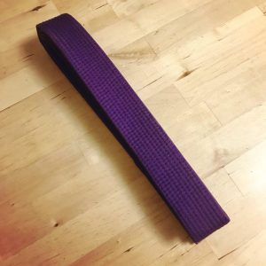 先日の練習が終わったあとに先生から紫帯をいただきました。青帯だった期間は2年と10ヵ月。